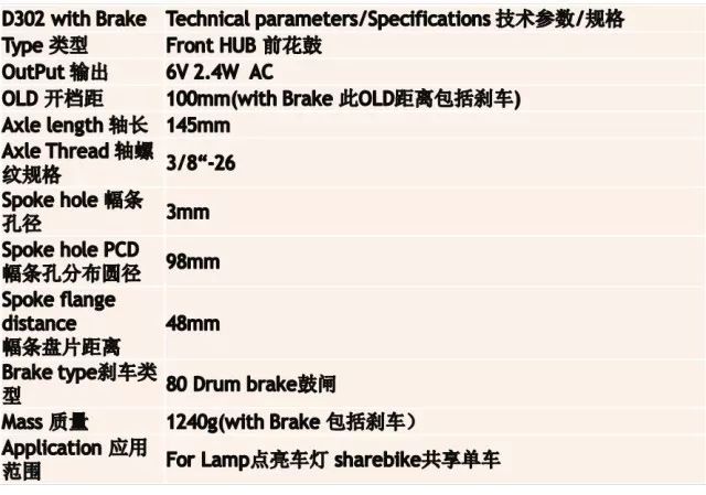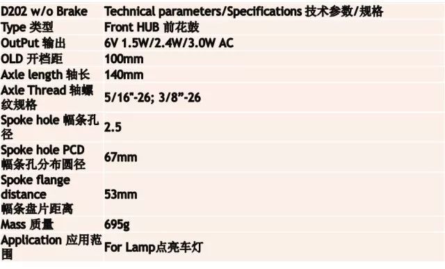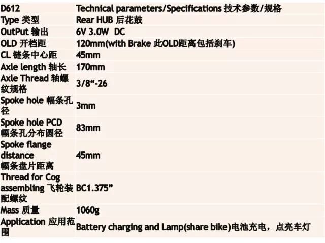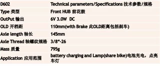 Dynamo-D602前直流一體輪發(fā)電花鼓
